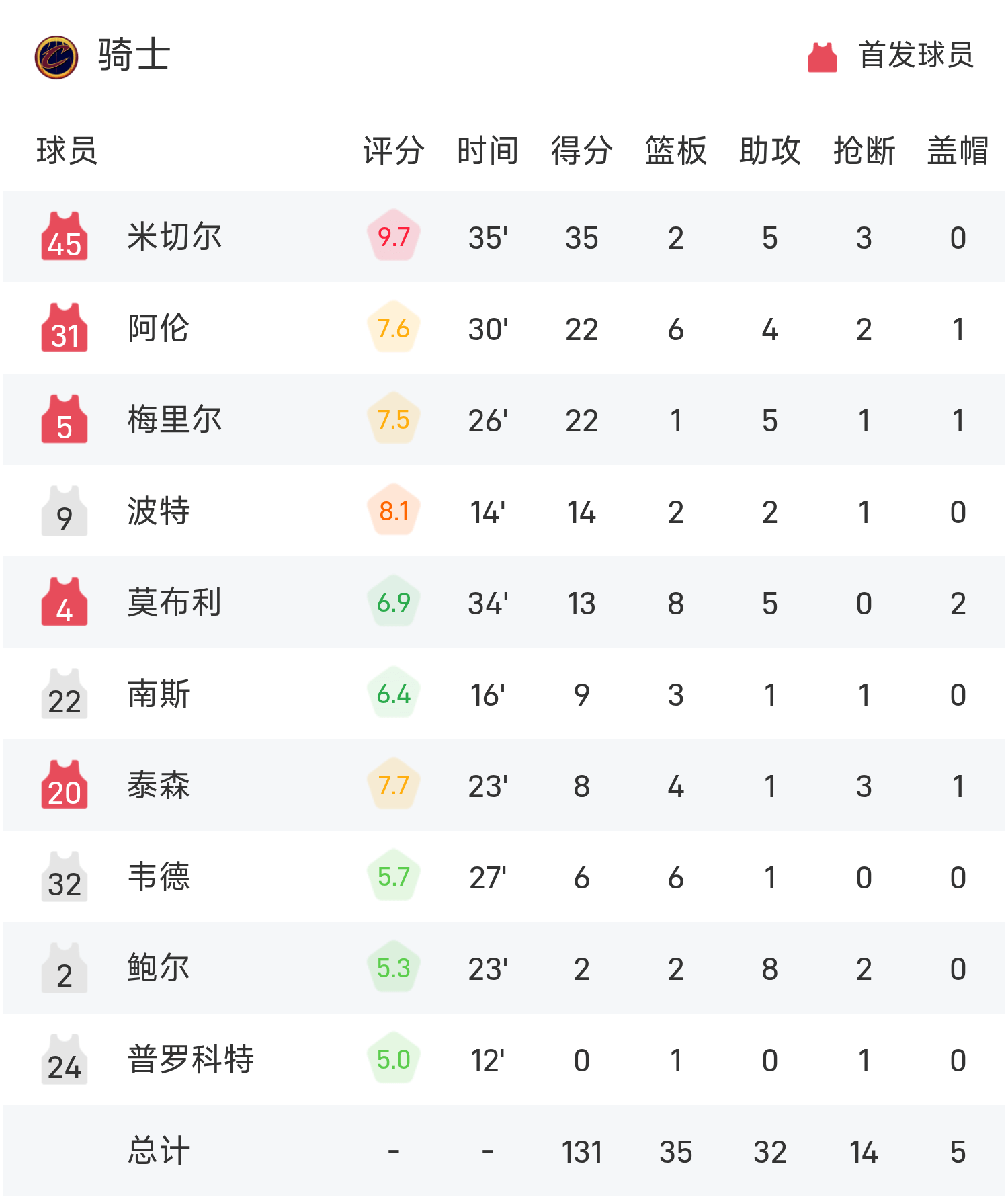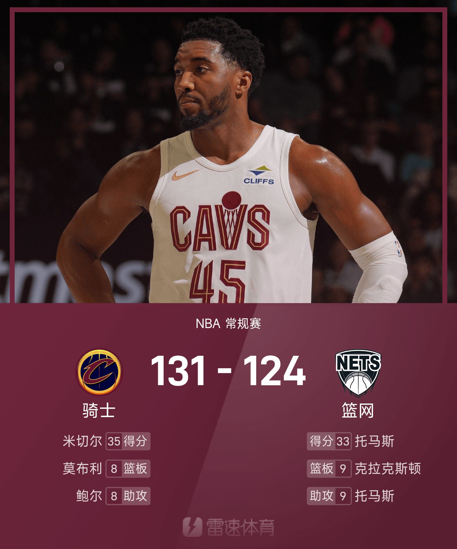 NBA战报:米切尔35分,骑士131-124击败篮网