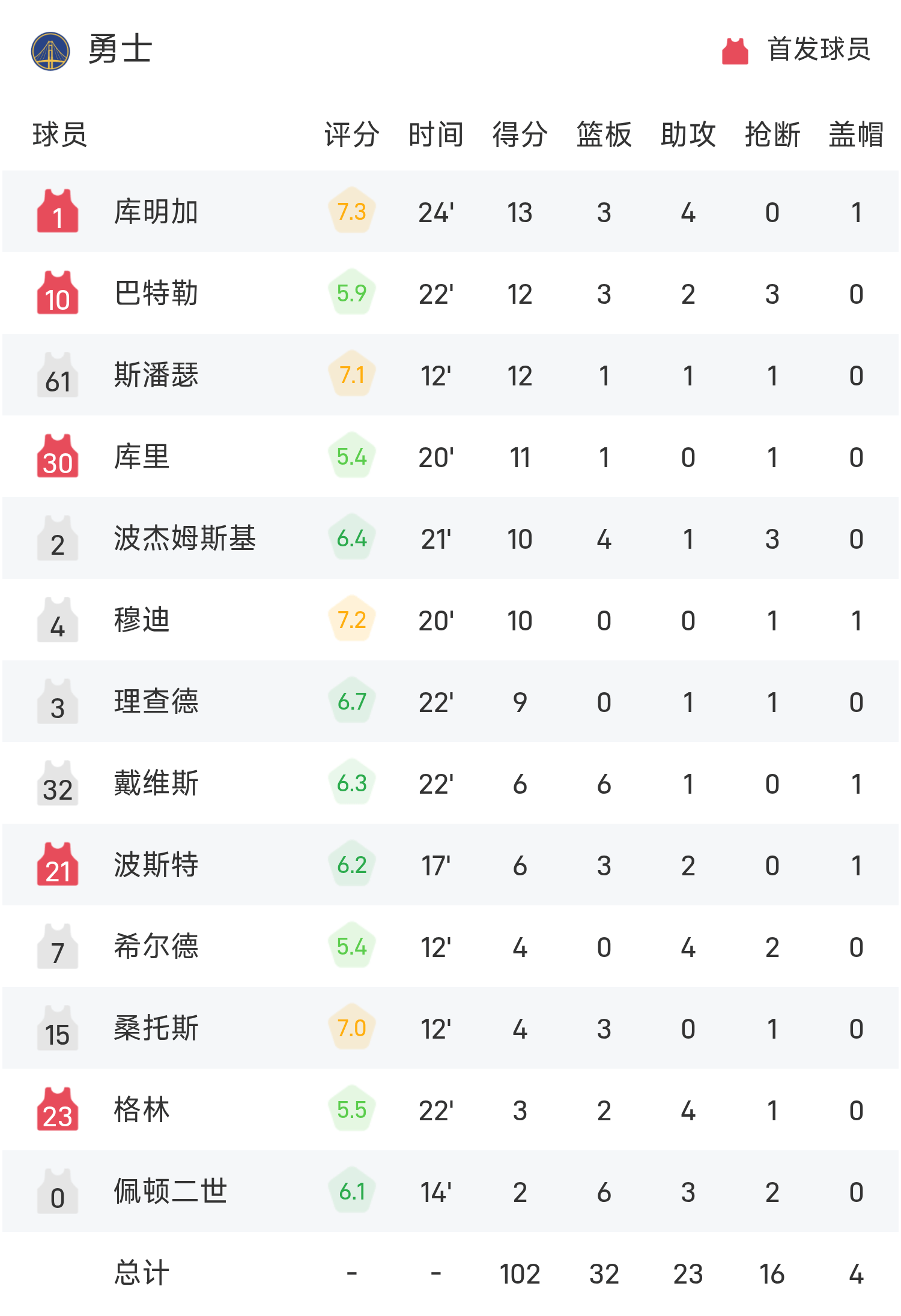 6686体育11月12日讯 25/26赛季NBA 常规赛,雷霆对阵勇士。双方全场战罢,雷霆124-102战胜勇士。亚历山大砍下全场最高的28分5板11助,率领雷霆胜利取胜。