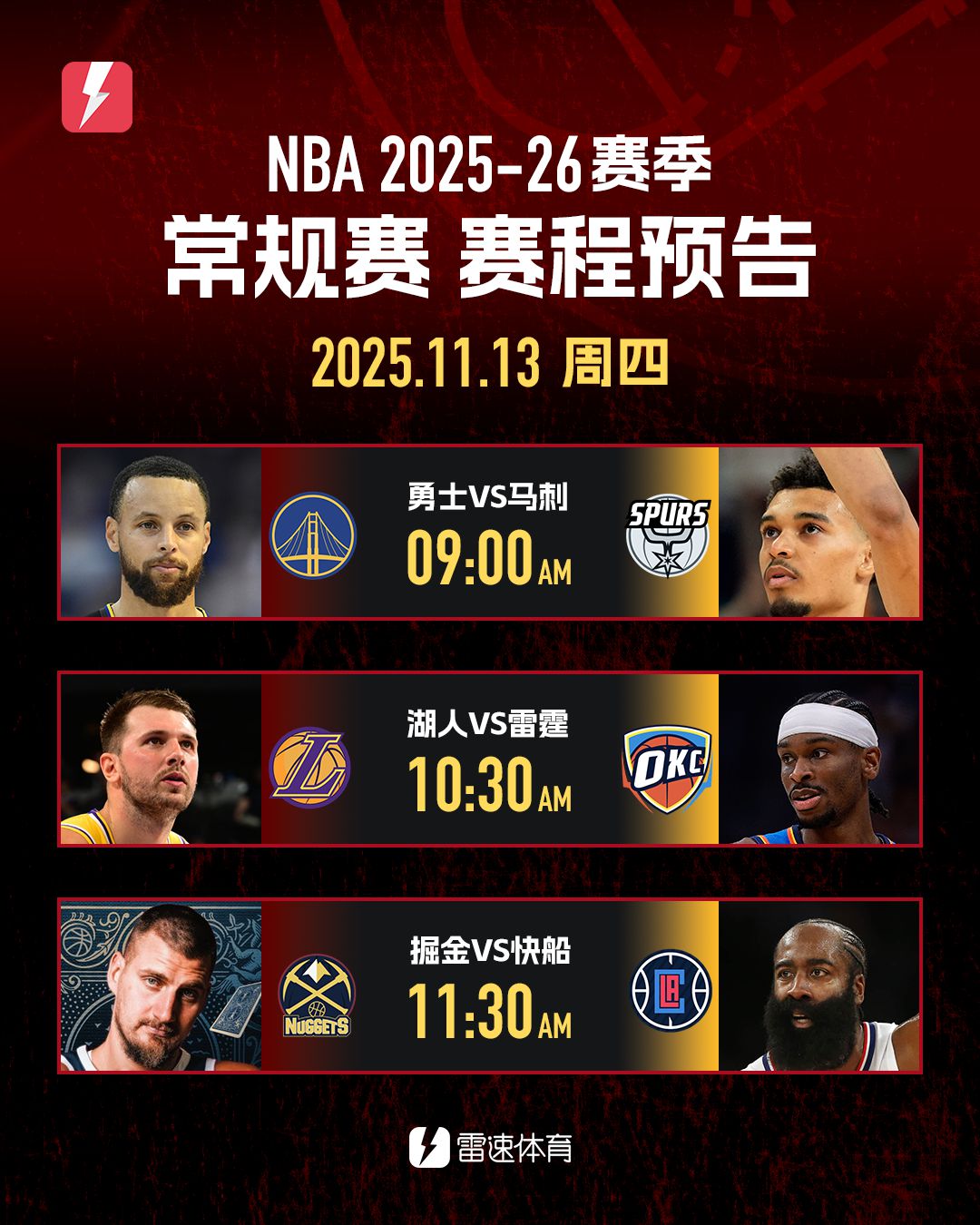 11点30分:快船对阵掘金