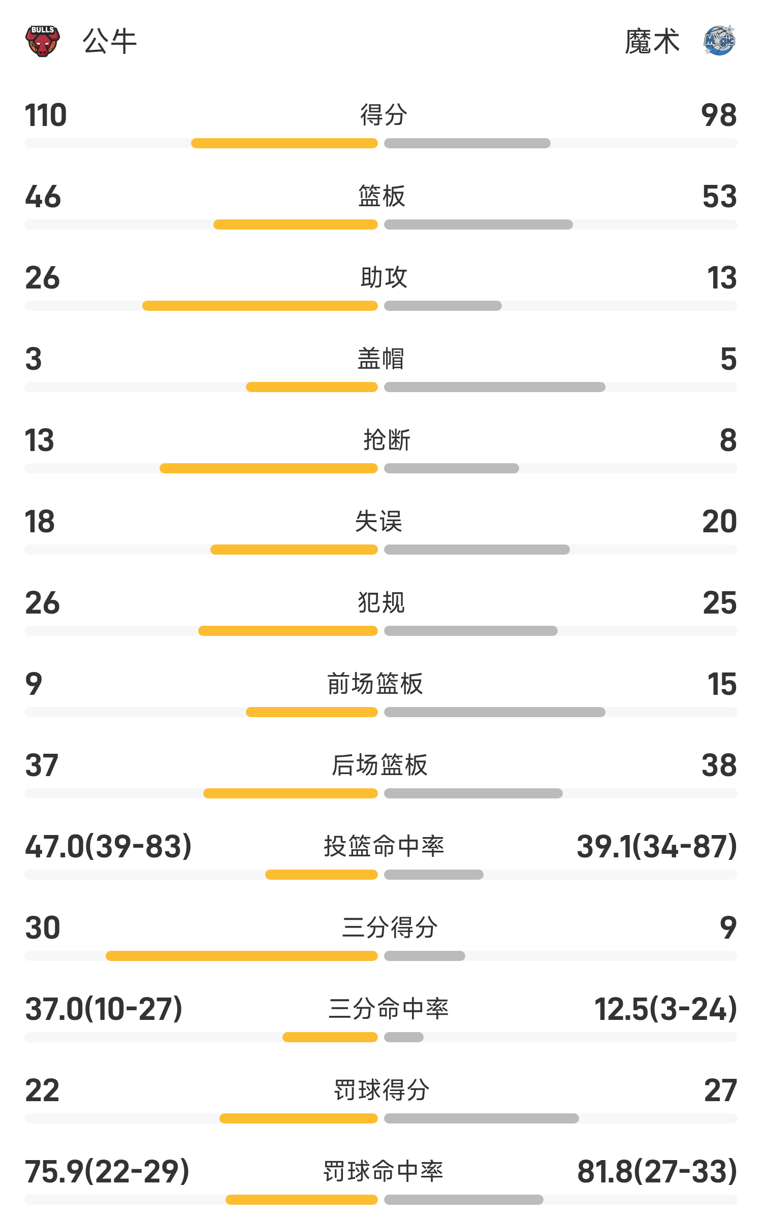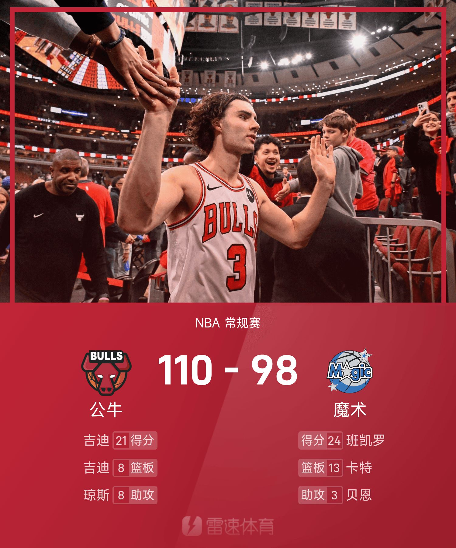 NBA战报:班凯罗24+10难救主,公牛110-98击败魔术