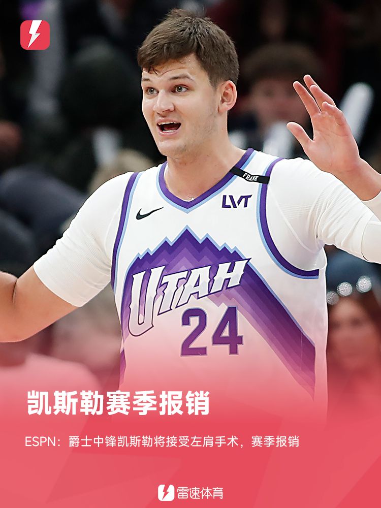 Shams:爵士五号位凯斯勒接受左肩手术,赛季报销