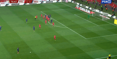 35’马伦与队友打出撞墙式协作卮下底传禁区被波兰后卫清球