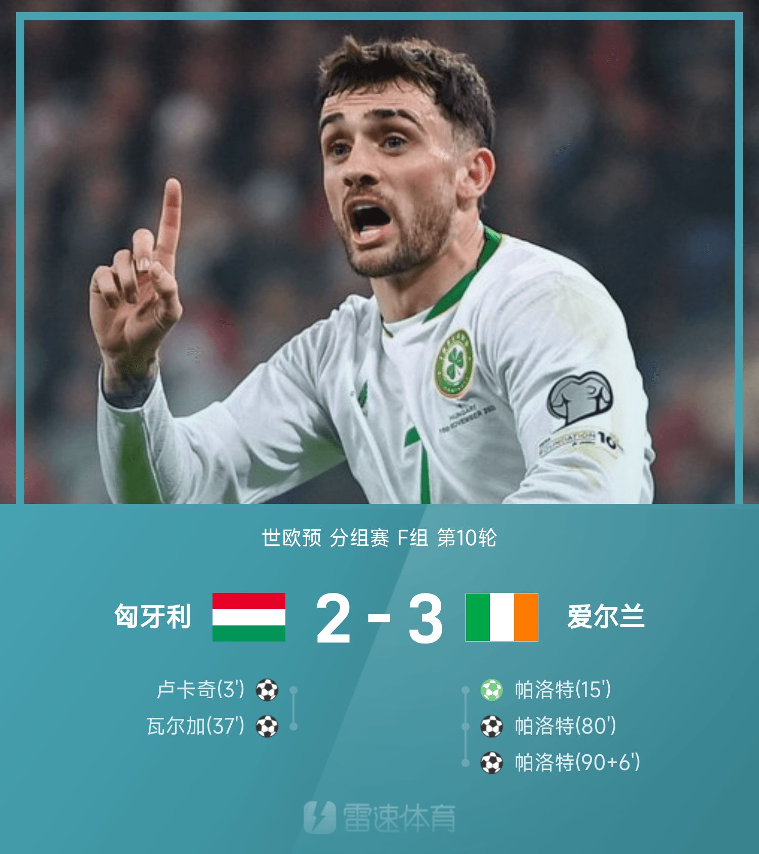 世欧预战报:帕洛特戴帽+最后一投,爱尔兰3-2匈牙利,挺进附加赛