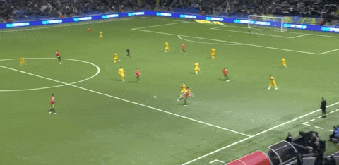 17’奥纳纳三秒区外起脚外围射门,皮球直接飞上看台