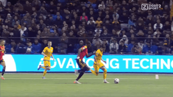59’频频发难!范纳肯弧顶区域顶起脚外围射门,未能命中球门口范围