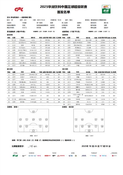 6686体育10月26日讯 中超联赛事第28轮,青岛西海岸主队场迎战成都蓉城,赛前双方首发出炉。