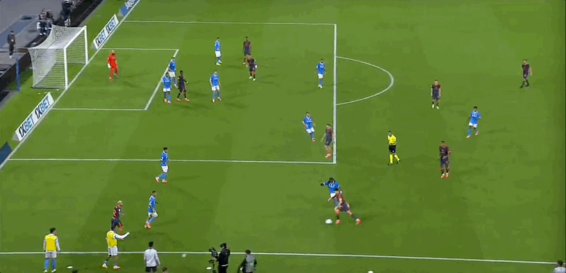 那不勒斯首发阵容:32-萨维奇、5-小胡安、37-斯皮纳佐拉(90’3-古铁雷斯)、22-迪洛伦佐、4-布翁焦尔诺(90’31-别克马)、11-德布劳内(37’17-奥利维拉)、21-波利塔诺(82’20-埃尔马斯)、99-安古伊萨、8-麦克托米奈、6-吉尔莫、7-内雷斯(81’70-朗)