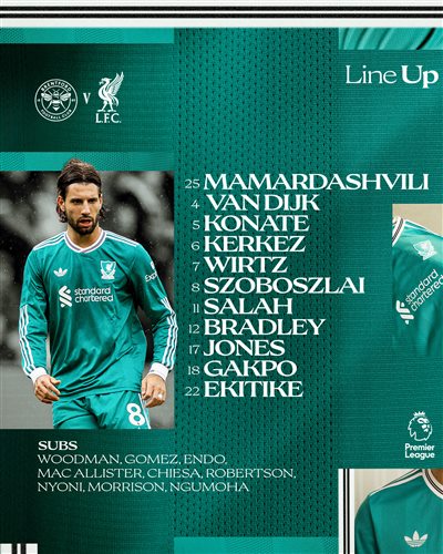 北京时间10月26日凌晨3:00,25/26赛季英超联赛事第9轮,利物浦做客对阵布伦特福德,赛前首发公布。