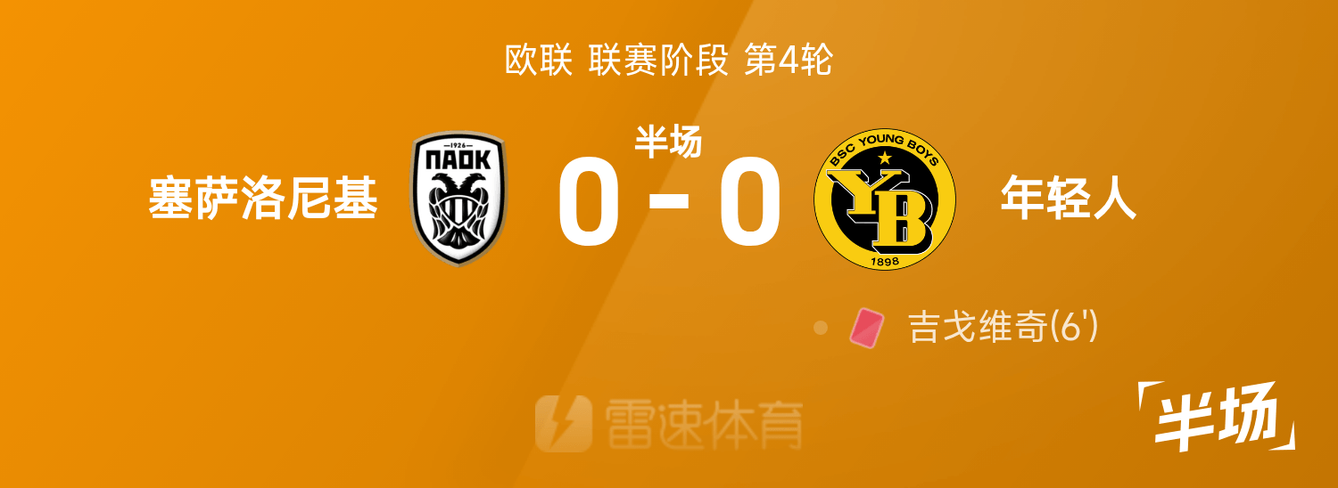 欧联半场:吉戈维奇染红,塞萨洛尼基0-0年少人