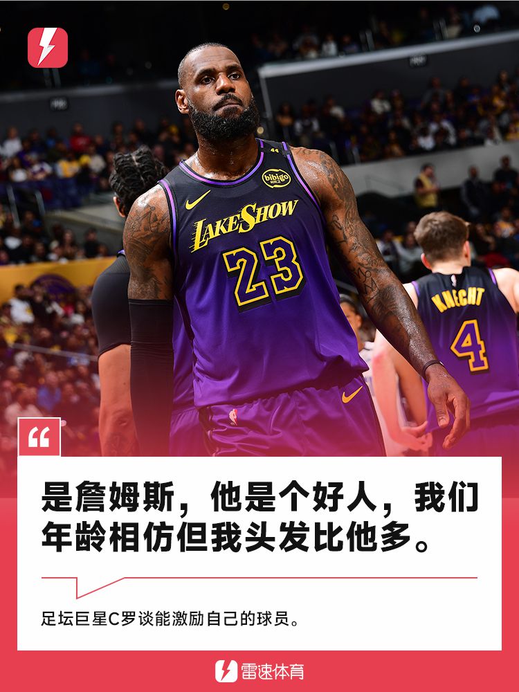 C罗表示:“谁能激励我?我自己算一个,其他也有很多好榜样,比如篮球运动员勒布朗·詹姆斯,我们年龄相仿,他是个好人但我头发比他多,哈哈哈哈!他的身体机能依然保持得不错,也在场上拼搏着,也保持了很好的竞技状态,还有莫德里奇,他也保持得很棒。”