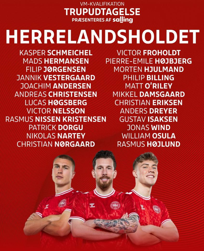 丹麦公布新一期大名单:霍伊伦领衔锋线,埃里克森入选
