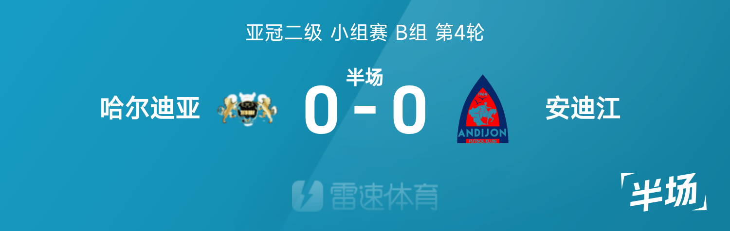 6686体育11月06日讯 25/26赛季亚冠二级分组赛B组第4轮,哈尔迪亚迎战安迪江。半场战罢,双方赛果分暂为哈尔迪亚0-0安迪江。
